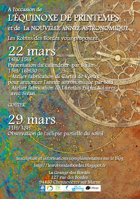 Samedi 22 Mars 14H 16H30 : atelier Astronomie début de l'année verbale en astronomie: création de cartes de voeux, et fabrication de lunettes filtre solaire